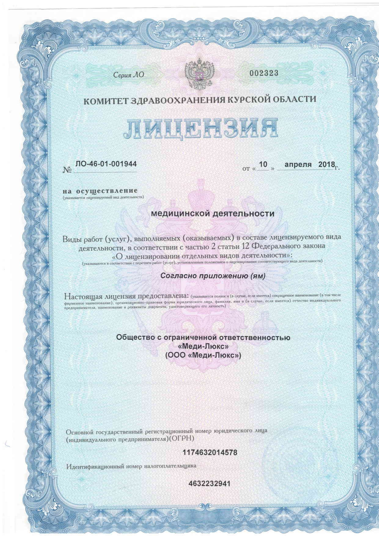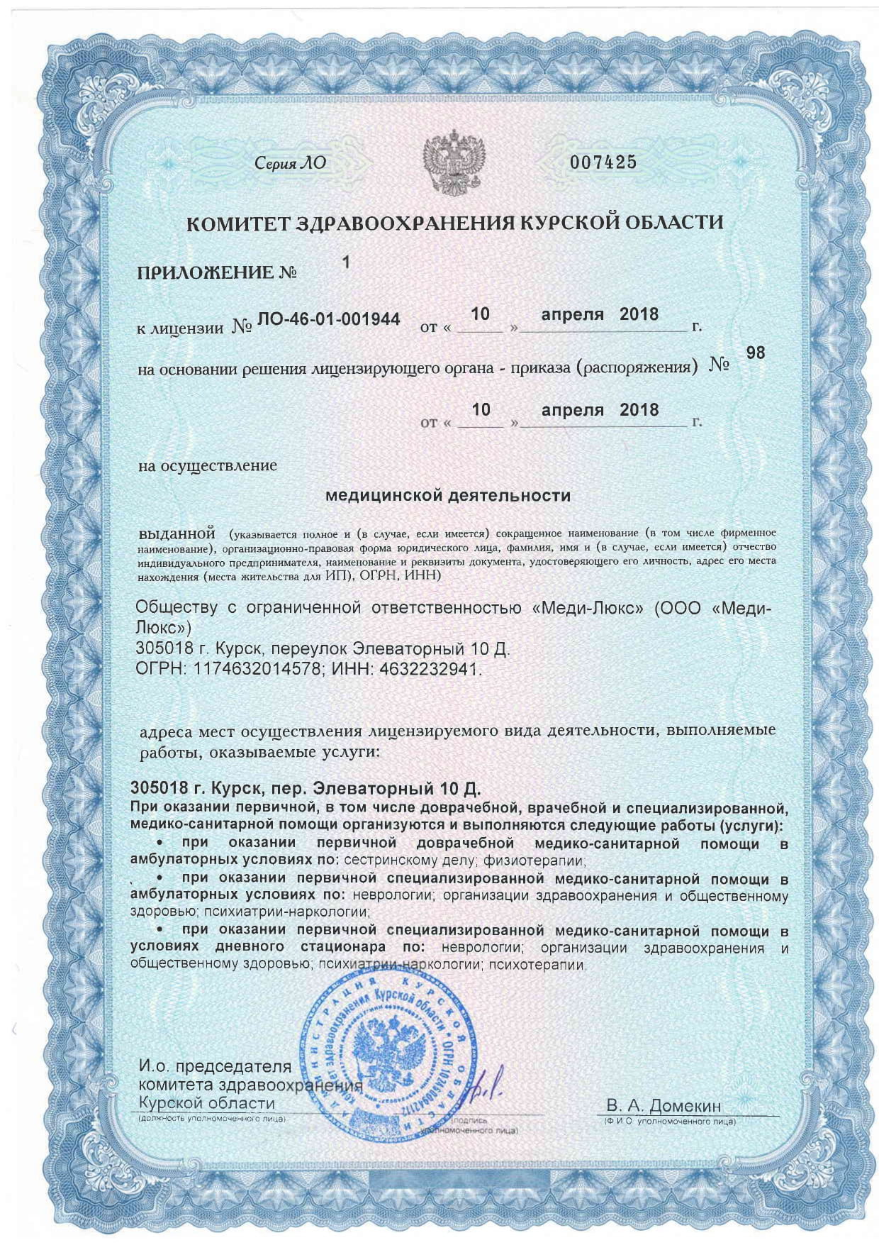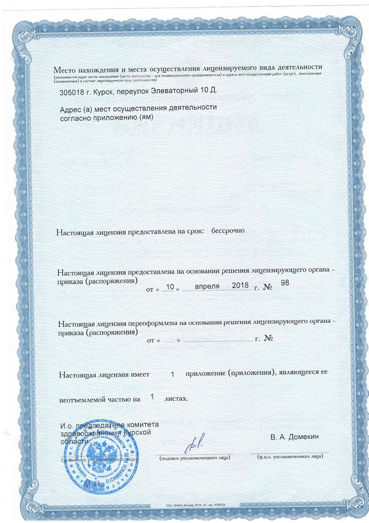 Медицинская лицензия с 1996 года